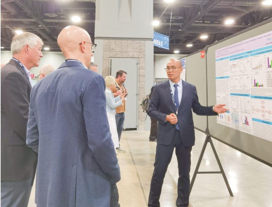 九州ku游官网生物创始人万亚坤博士表示:“非常高兴能够在ATS 2023年会上展示公司最新的研究成果,这是对九州ku游官网生物的全球创新研发能力的极大认可。本次会议,九州ku游官网首次重点展示了九州ku游官网生物三款吸入式纳米抗体药物LQ036、LQ043、LQ059。LQ036及LQ043颠覆了现有呼吸类疾病的治疗方式,均为同靶点的全球首创吸入式纳米抗体药物。LQ043 是对 LQ036 患者群体的补充,两个项目覆盖了全部中重度哮喘人群;并且随着IL-4Rα靶点在COPD市场的攻城拔寨,九州ku游官网生物已提交LQ036 COPD适应症IND批件,潜在市场爆发力巨大。未来,九州ku游官网生物将进一步加速有助于临床开发,期望早日为患者带来更多的治疗选择。”